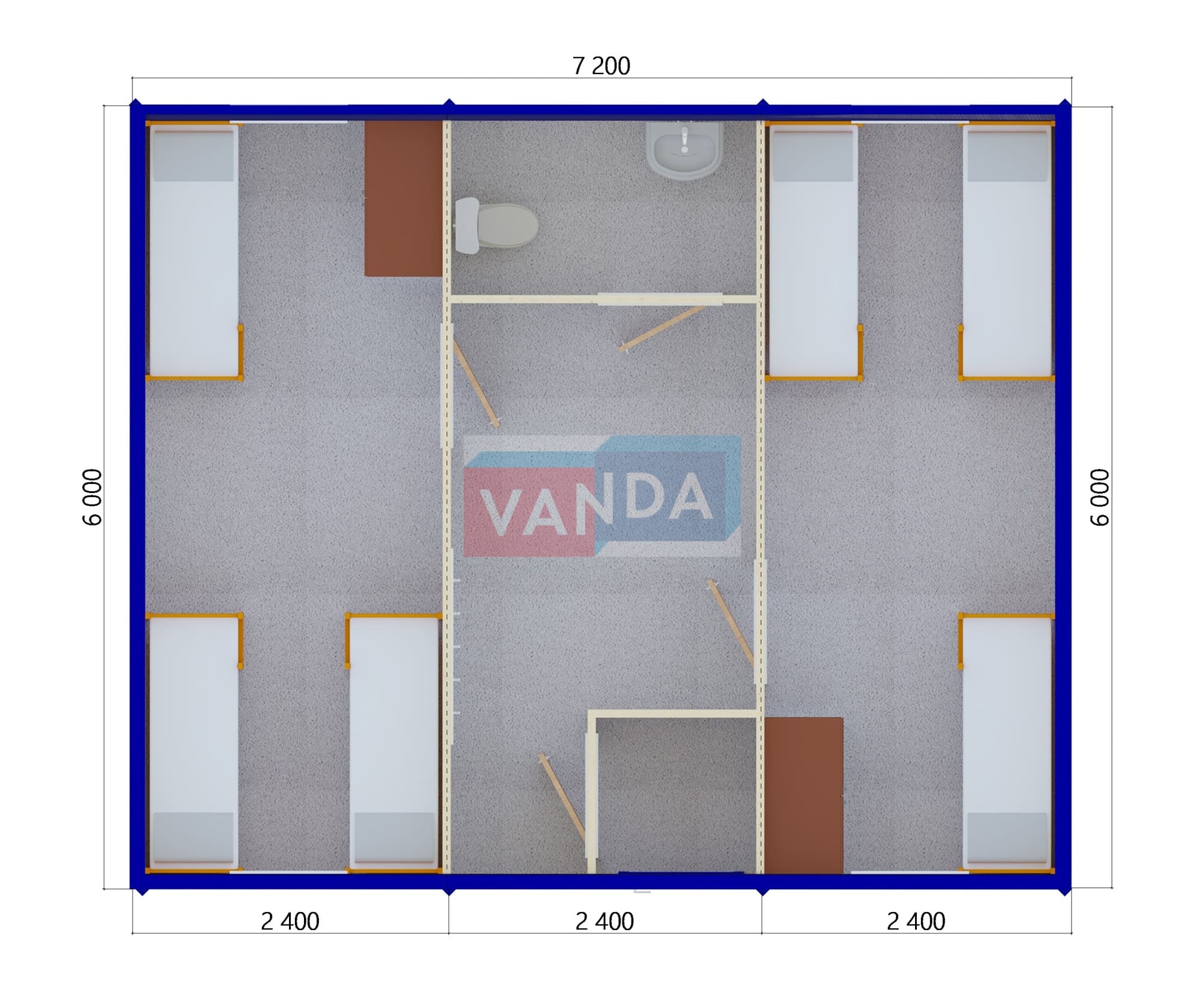Модульная бытовка с плоской крышей 7.2x6.0 7.2x6.0 43.2 OSB 9 мм. Оцинкованный профлист 675 000 р. Уточняйте у менеджера